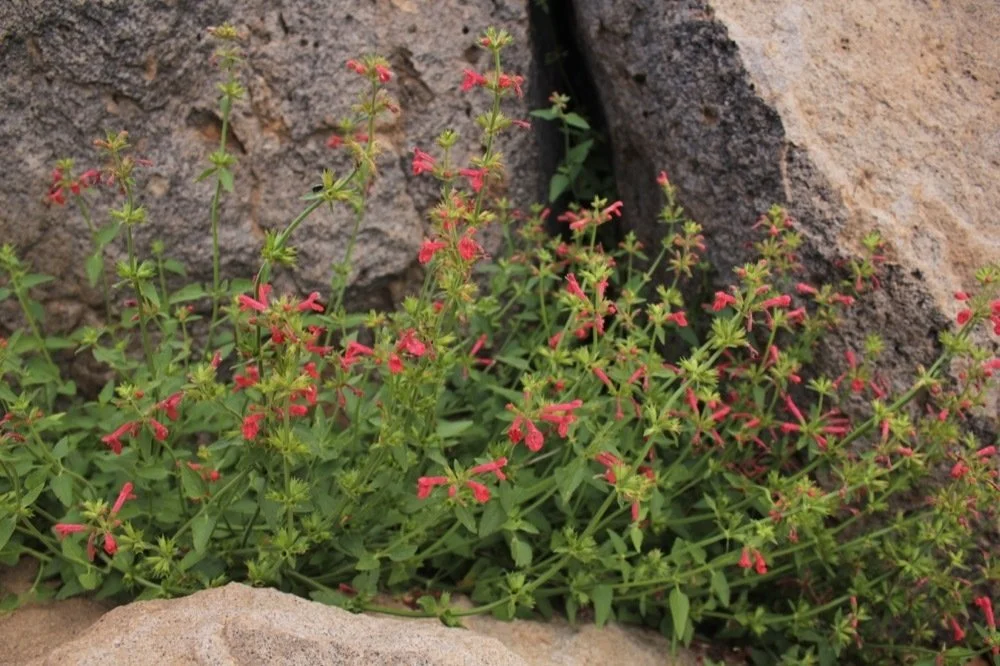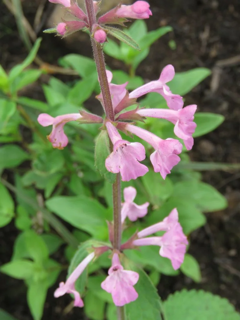 Herbaceous perennial growing to about 2x2’. Older leaves may turn purple in winter. Red tubular flowers almost any time of year. Though sometimes called nettles, Stachys species have no stinging hairs, as do true nettles, but resembles nettles visually. The foliage exhibits a very herbal fragrance.