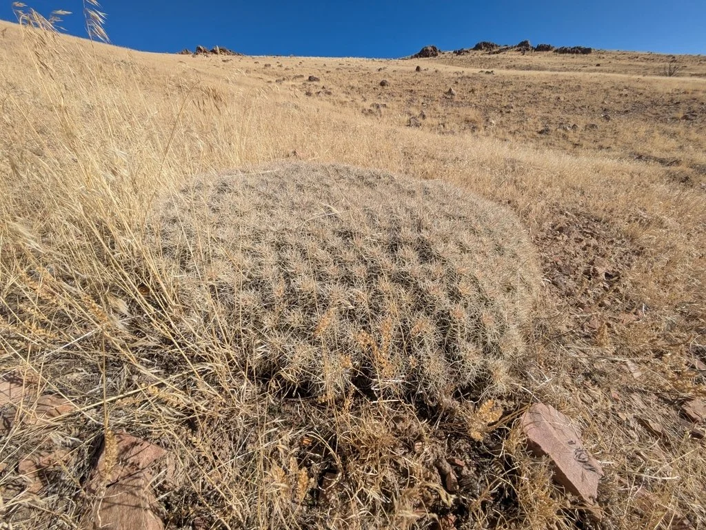 Seeds are dispersed from the fruits of mature plants. While ants occasionally take fruit to their mounds, leaving seeds above to sprout - feeding by rodents and lagomorphs are the most common means of dispersal. New sprouts of the cactus thrive under the shade of the fourwing saltbush, which provides protection from animals and desiccation. New growth of E. triglochidiatus is clustered around very old specimens, atop the remains of the saltbushes that served as a nursery. Rodents occasionally kill the plants by digging nests underneath, destroying roots.