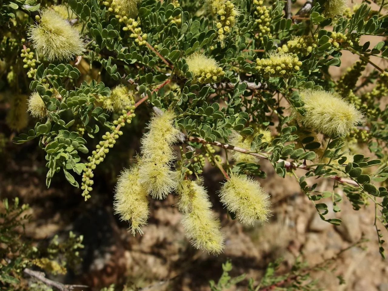 The flowers are extra nectar-rich and attract a load of butterflies, bees, and more. Butterfly larval food plant for the Mexican yellow (Eurema mexicana), the Mimosa yellow butterfly (Eurema nise), the Reakirt’s blue (Echinargus isola), and the marine blue (Leptotes marina). Moth larval food plant for Hubbard’s small silkmoth (Sphingicampa hubbardi), tricolor buckmoth (Hemileuca tricolor), black witch moth (Ascalapha odorata), mesquite stinger flannel moth (Norape tenera), naval orange worm moth (Amyelois transitella), the merry melipotis moth (Melipotis jucunda) and many others. Attracts substrate-insectivorous birds. Some species consume seeds as well. Flowers attract all sorts of nectar-eating insects. Nice habitat for birds (the dense, thorny branches protect animals hiding within).